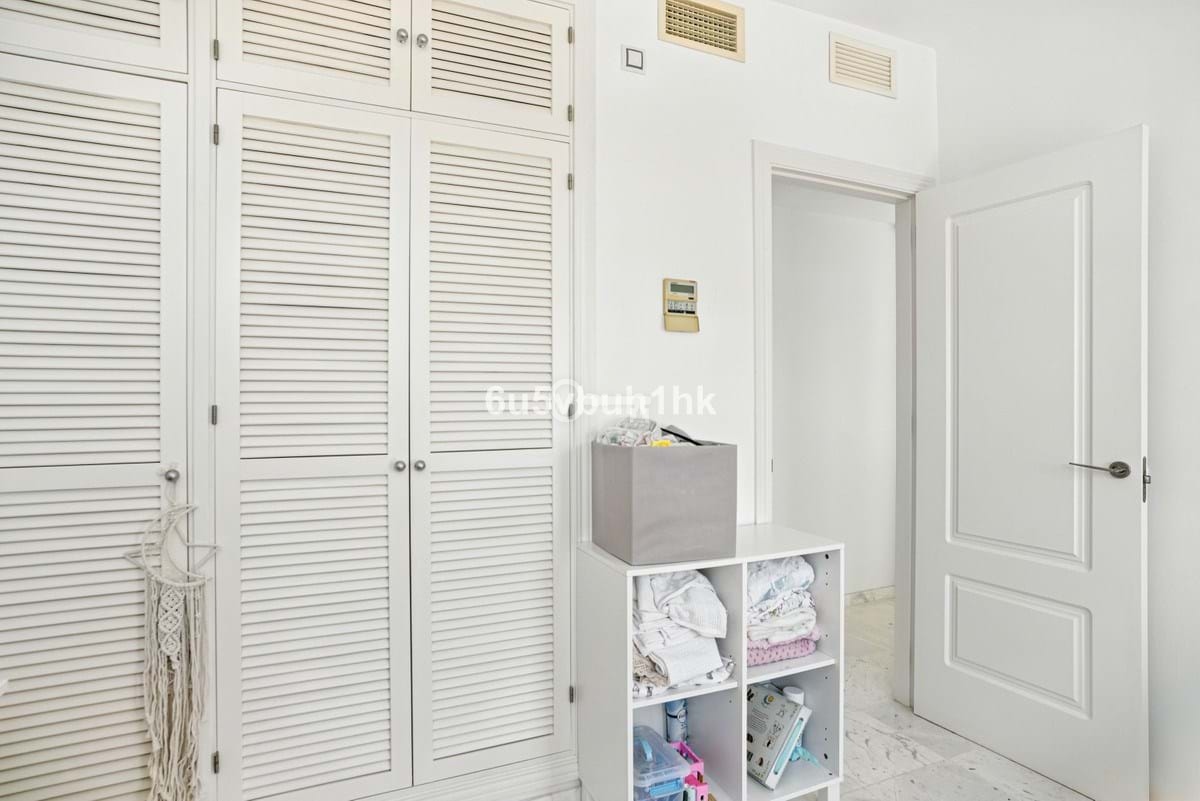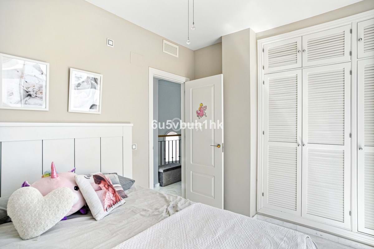On the main floor, there is a guest toilet and the master bedroom with en-suite bathroom and direct access to the terrace. The upper floor features a bright landing, a full bathroom, and two bedrooms, both with access to a terrace offering partial sea views.