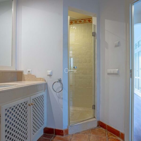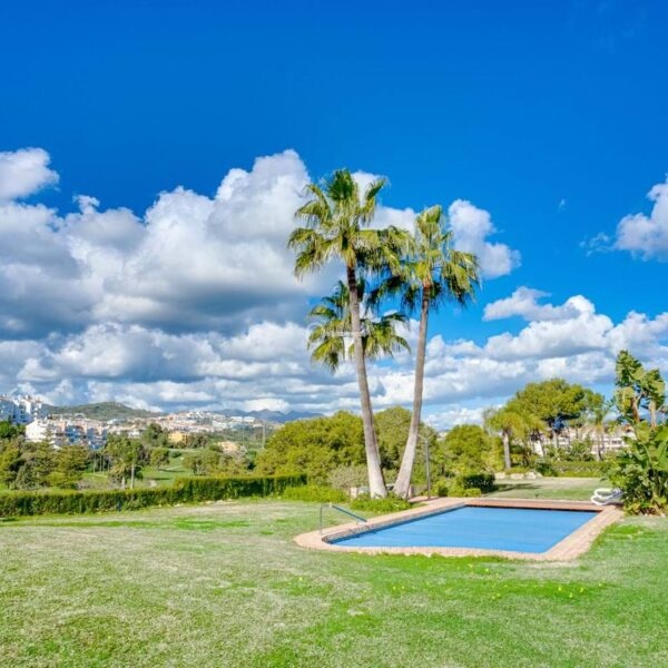 Lovely three-bedroom semi detached Villa in a gated community of Riviera Del Sol, the community has well kept gardens, two communal swimming pools, one of them being heated, and is a short walk to the beach and local amenities. The property has an open plan living and dining area with a built-in fireplace and access to the spacious terrace with views to the mountains, golf and pool; fully fitted kitchen; and guest toilet. The lower-level leads to the master suite with access to the private garden; two guest suites; and access to the private double garage. Other features include hot and cold air conditioning, electric shutters and fitted wardrobes. A great reform opportunity in a residential community.