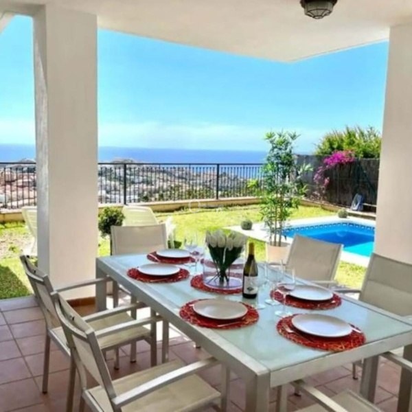 Semi-detached house with breathtaking seaviews from every room and floors, located in the upper area of Riviera del Sol, approximately 10 minutes by car from the beach and amenities.