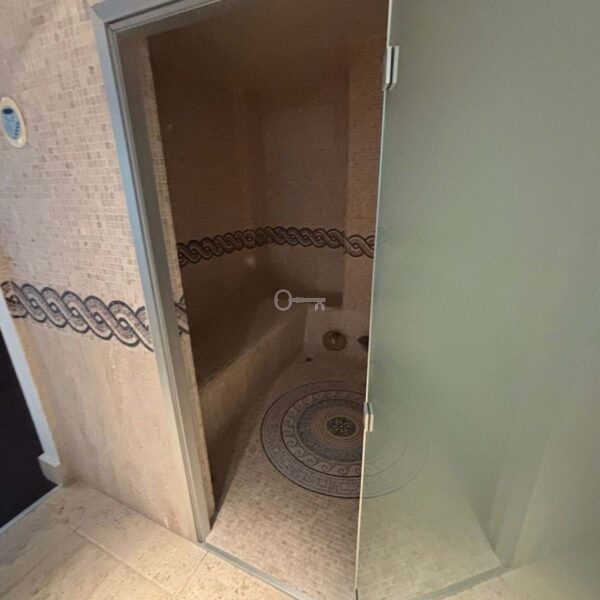 The formal living room also has a “hidden door” which leads to 2 downstairs guest bedrooms and a shared bathroom. The kitchen features a rustic style with granite worktops, American-style fridge/freezer, newly fitted appliances and an island countertop with adjoining kitchen table. Off the kitchen is a formal dining room which leads to the large enclosed terrace/conservatory. In addition, further down the hall is the separate smaller family room which makes for a more cosy environment but still offers multiple seating areas. This villa has a lot to offer and is perfect for families and hosting guests.
