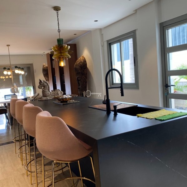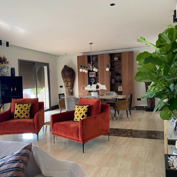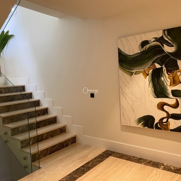 This residence spans several meticulously designed levels, all connected by a private interior elevator. The interiors are furnished with top-of-the-line furniture and fitted with high-end appliances. A spacious custom-made kitchen and a unique walk-in wardrobe have been crafted from the finest materials, reflecting impeccable taste and the highest standards of quality.