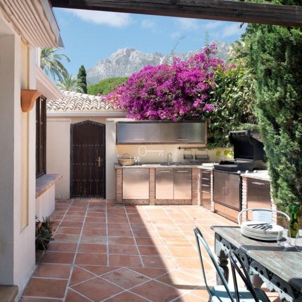 Discover this stunning villa in classic French and Tuscan architecture style, located in the exclusive area of Balcones de Sierra Blanca. Situated in a cul-de-sac street, this property offers the privacy and tranquillity you have always wanted. With a large welcoming front courtyard, the entrance to the house is simply spectacular. The kitchen, with its particular charm, connects to a spacious dining area. From here, you have direct access to a summer terrace equipped with a second outdoor kitchen, ideal for summer evenings.