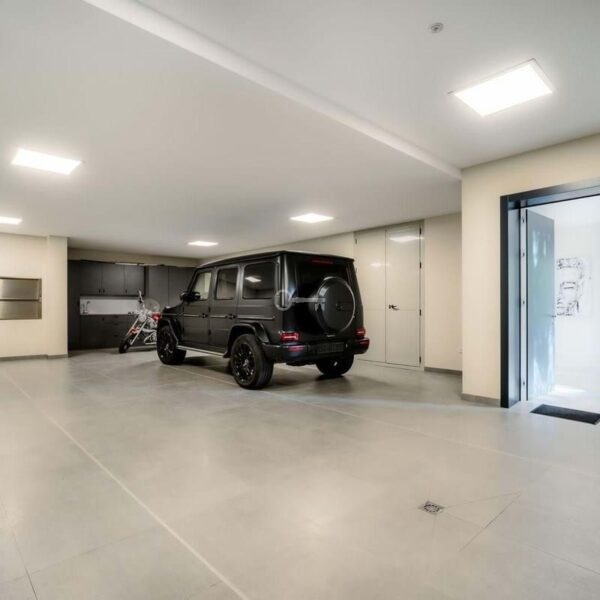 Moving to the underground level, you’ll discover a parking area with space for three cars, a gym, and ample room to create a cinema or a playground, offering endless possibilities for entertainment.