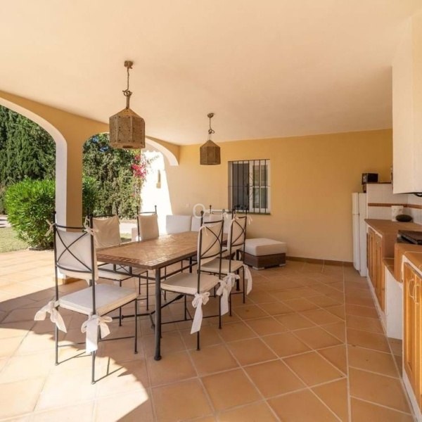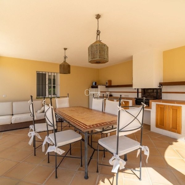The charming villa provides complete privacy for its residents. Designed on a single level, the property boasts a traditional Andalucian courtyard at its center, creating a spacious ambiance filled with natural sunlight. The expansive rooms feature high ceilings, with each bedroom offering its own ensuite bathroom.