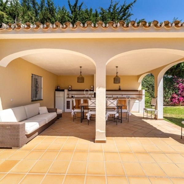 This stunning Andalusian-style villa is located in Marbella’s prestigious residential area, Cascada de Camojan in Sierra Blanca, featuring 24-hour manned security and comprehensive video surveillance.