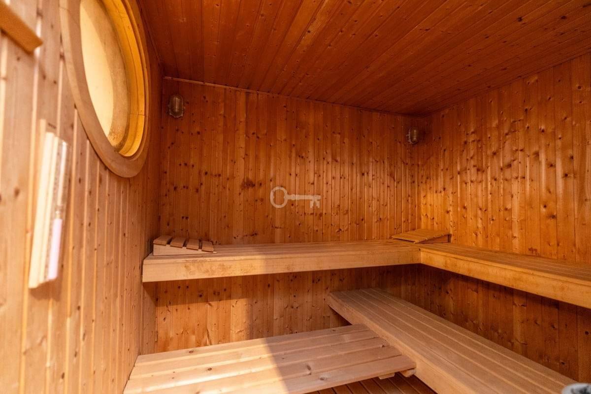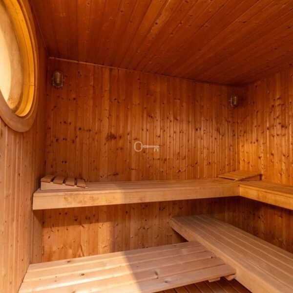 The property boasts a 350 m² lower level with a fully equipped gym and sauna, an elegant bar area, and a spacious garage for multiple cars. The outdoor spaces feature beautifully landscaped gardens and a swimming pool surrounded by generous terraces for dining and relaxation.