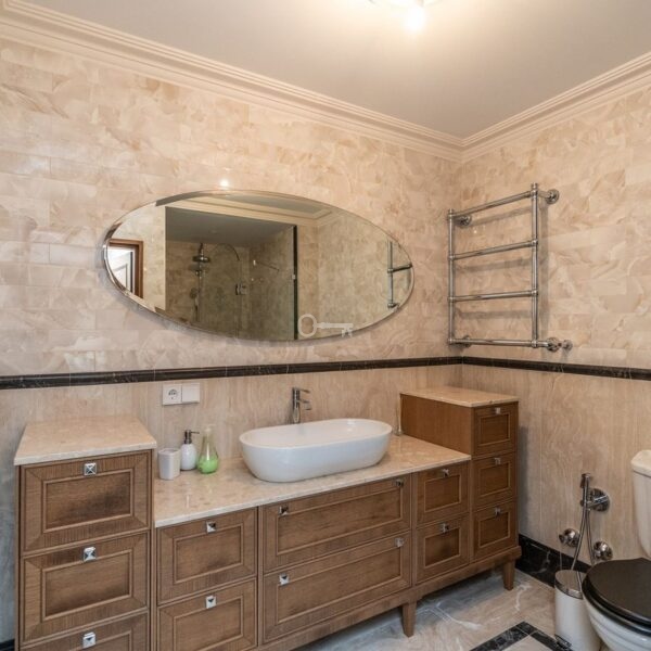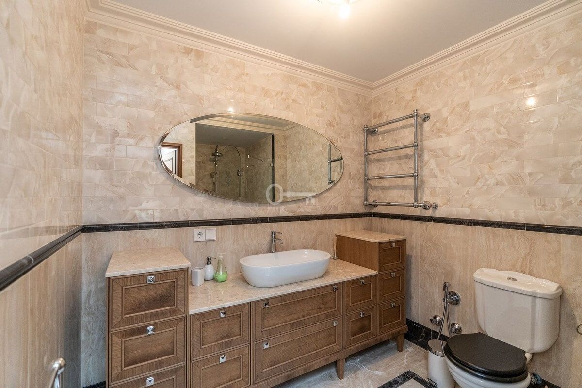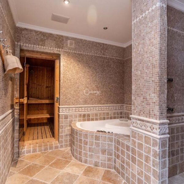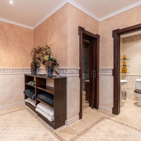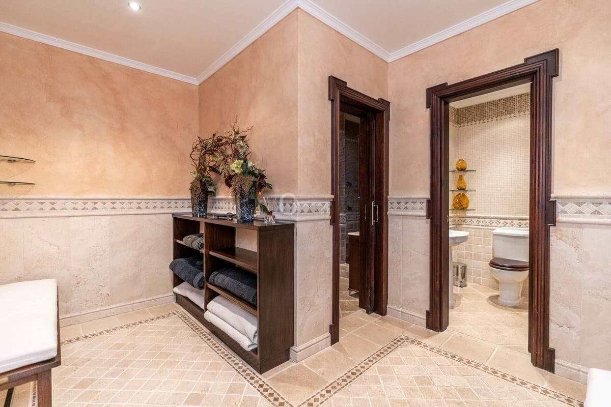 The villa extends over 985 m², featuring seven bedrooms and seven bathrooms, designed with refined Mediterranean architecture and timeless elegance. The master suite includes a private terrace and large walk-in wardrobes, creating a sanctuary of comfort and sophistication.