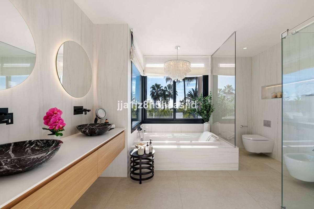 Set within the prestigious Le Blanc development in Sierra Blanca, one of Marbellas most sought-after residential enclaves, this exceptional semi-detached villa offers refined luxury living just six minutes from the beach and within walking distance of select amenities.
