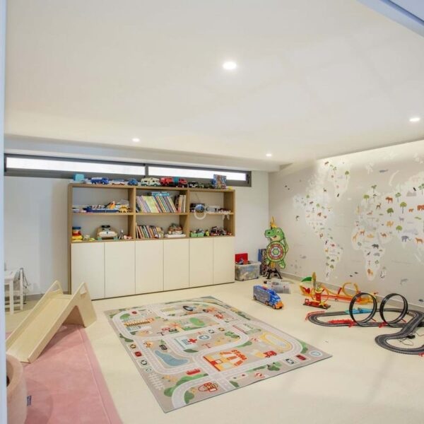 (4) Walking downstairs we have a totally renovated basement space that has been transformed into a fully equipped gymnasium with rest room, kids playroom / customisable space, home-cinema, storage areas and a laundry room.
