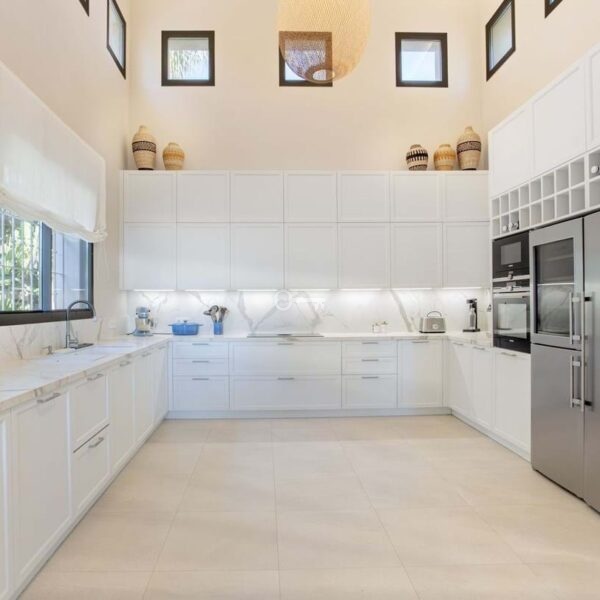 (1) Walking straight through you have a large living room area connected to the covered patio, gardens and pool. In the living room you will find connections to the dining room and large kitchen with breakfast and snack area.
