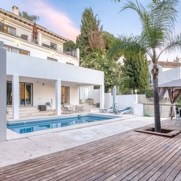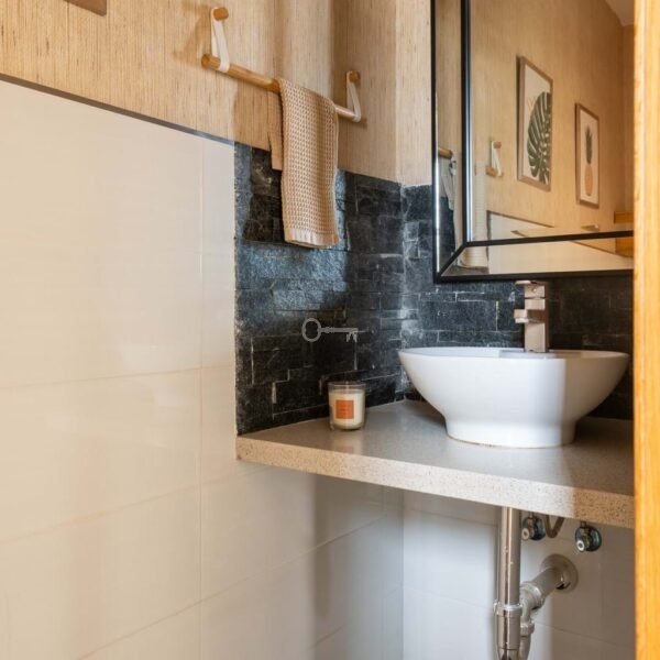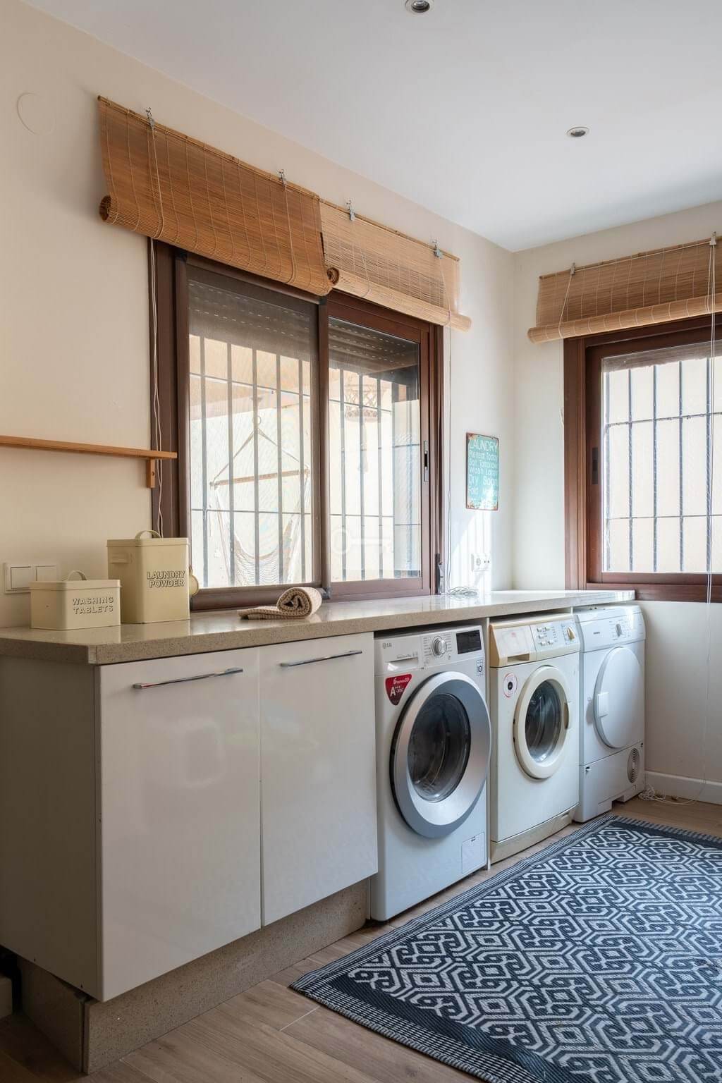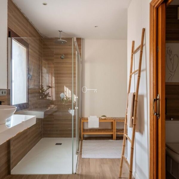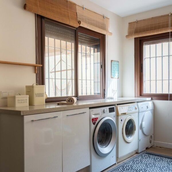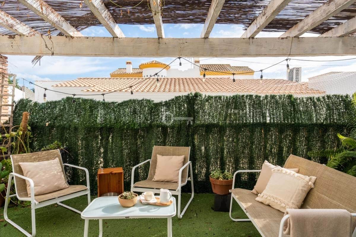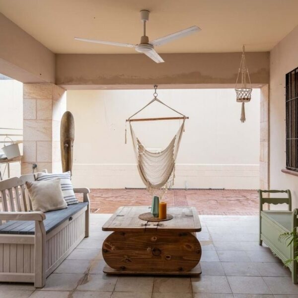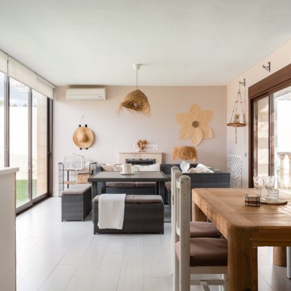 Everyday comfort is further enhanced by abundant storage space, air conditioning, ceiling fans and solar panels. Outside, the home is surrounded by a private, low-maintenance tiled courtyard, enclosed by walls for privacy. Here, you will find a swimming pool, multiple terrace areas oriented to enjoy the sun throughout the day, and parking space for two vehicles.