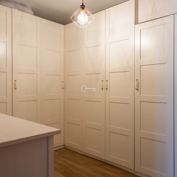 The lower level enjoys its own private entrance and is also accessible from the upper floor via two separate staircases, allowing for flexible and independent use. This floor is dedicated to rest and functionality, housing the bedrooms as well as spaces for work and household care. Currently, the layout includes three bedrooms: two comfortable childrens rooms and a generously sized master bedroom. In addition, a peaceful home office and a separate dressing room offer further versatility and can easily be converted into additional bedrooms if required. The master bedroom is complemented by a spacious, spa-inspired en-suite bathroom, while the remaining bedrooms share a second well-appointed bathroom along the hallway. A practical utility and laundry room is conveniently located next to the lower-floor entrance.