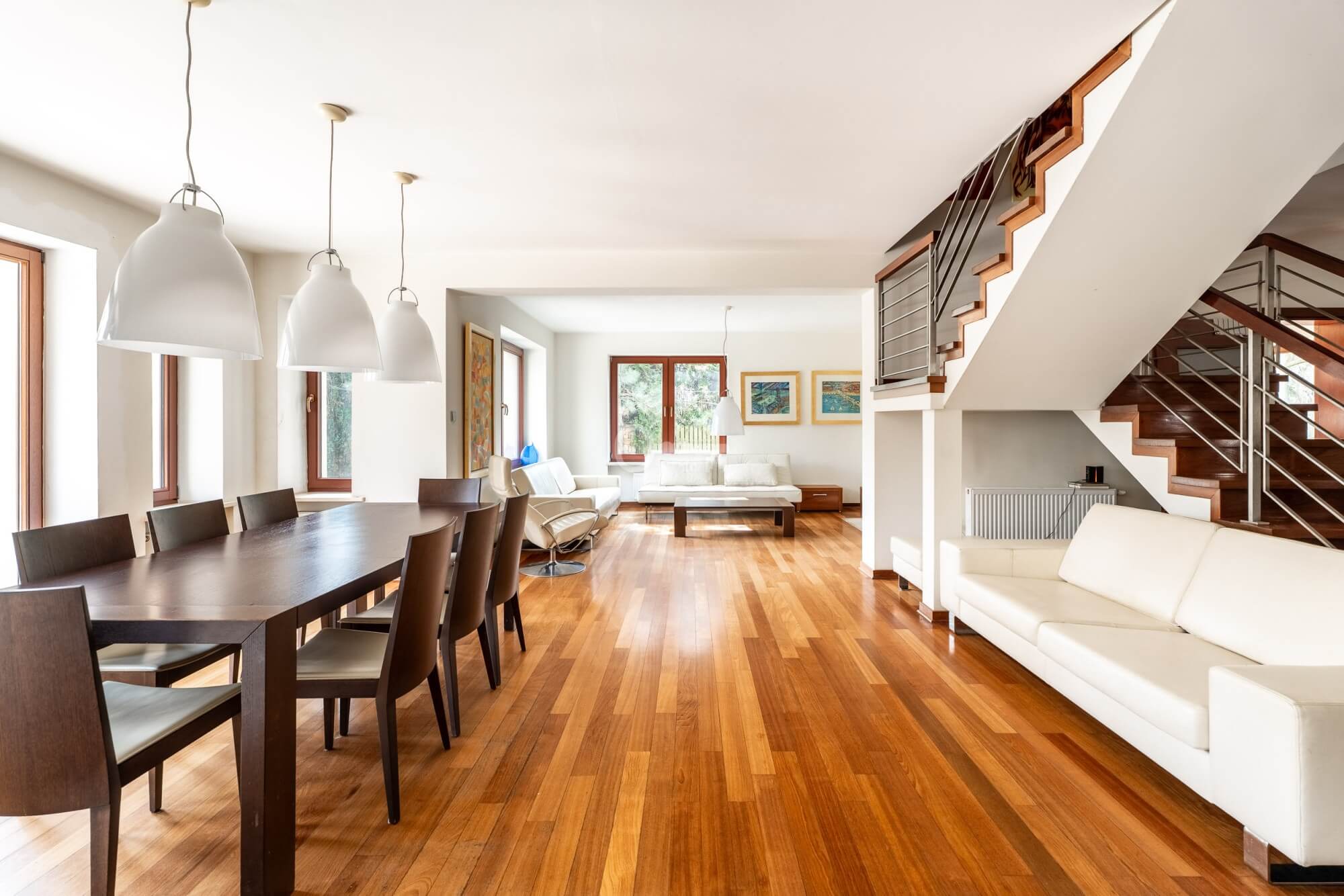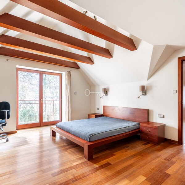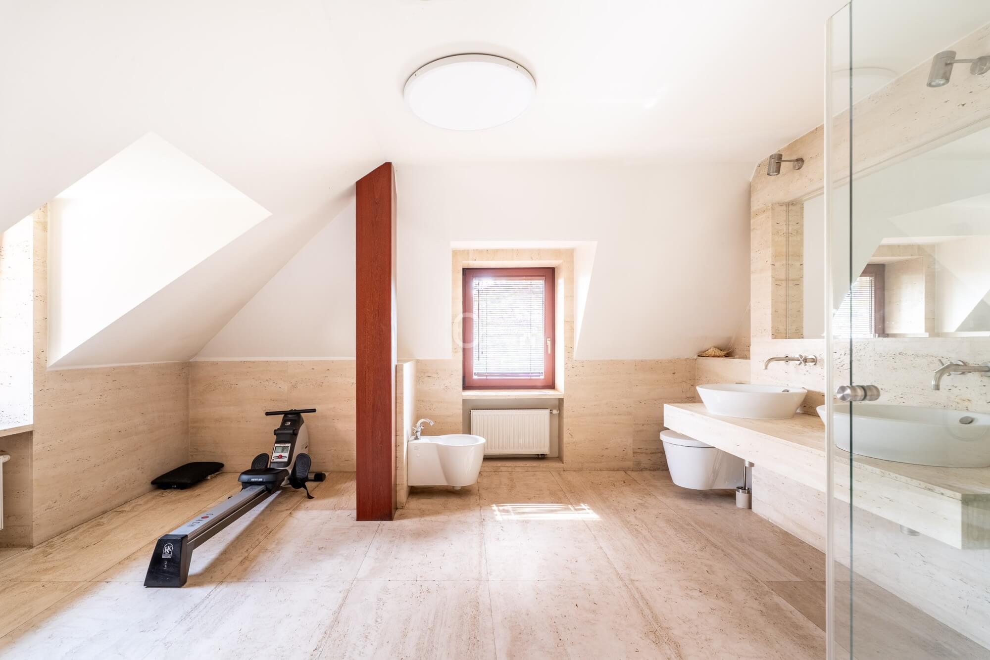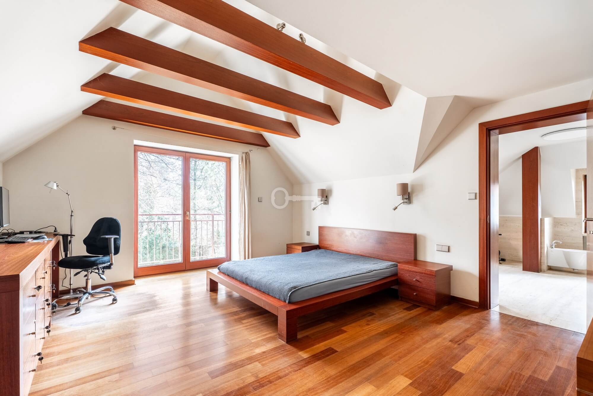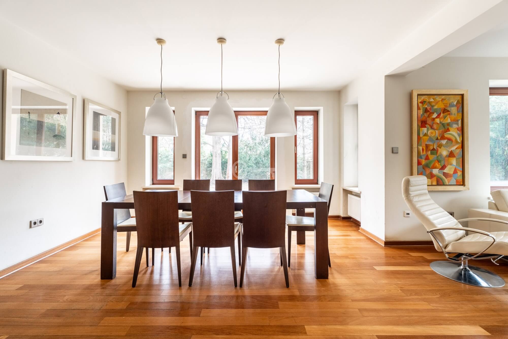 The property is situated on a beautiful, wooded plot of 2,300 m², which, thanks to mature, old-growth trees, offers a unique, forest-like microclimate and plenty of privacy.