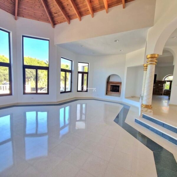 Outside, the villa offers an extensive garden, a private swimming pool, and a tennis court, creating the perfect setting to enjoy the climate and lifestyle of Sotogrande.