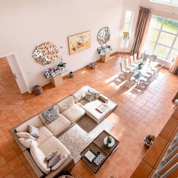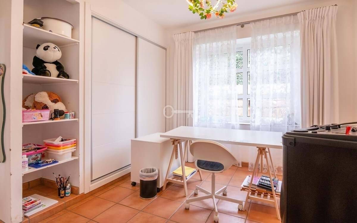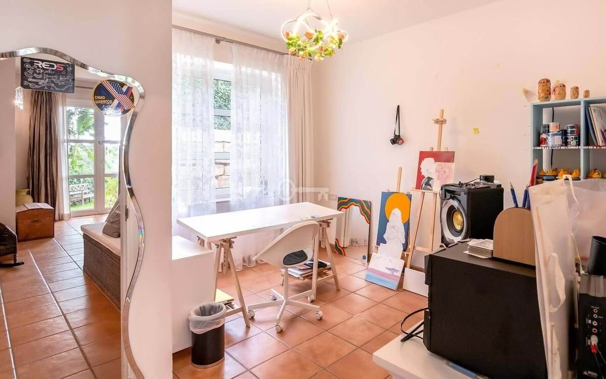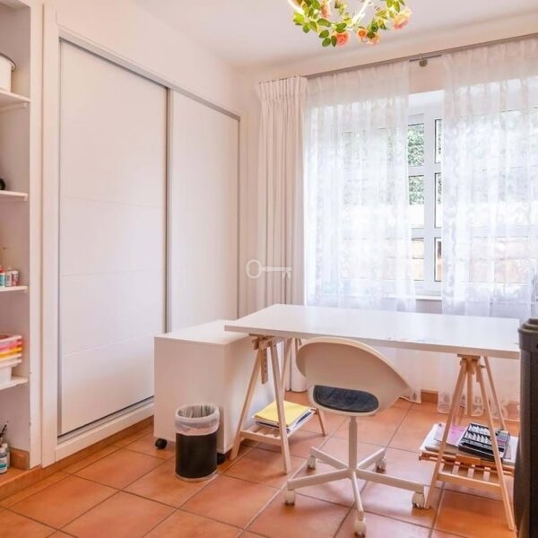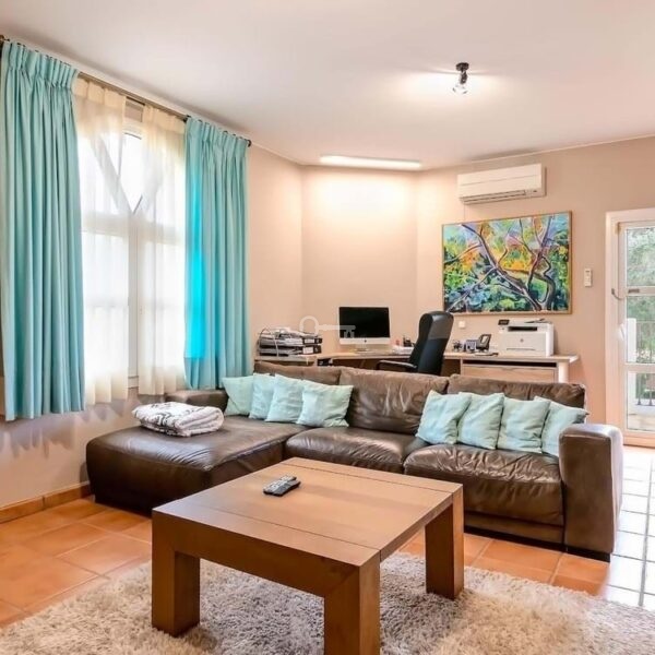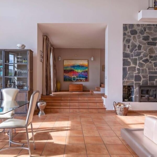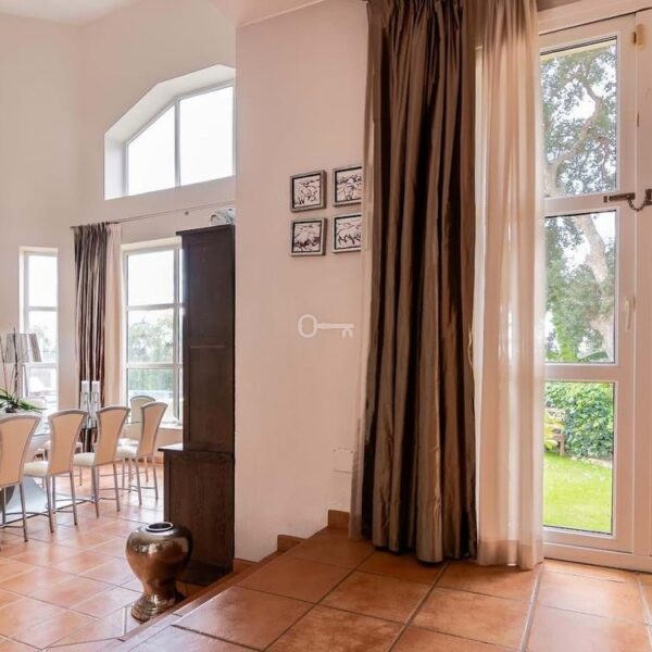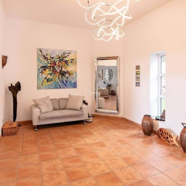 The villa is thoughtfully designed across two floors. The ground floor hosts the main living areas, including a versatile office or TV lounge, providing ample space for relaxation and entertainment. The first floor is dedicated to the bedrooms and bathrooms, ensuring privacy and comfort for all residents. Additionally, the property includes a small independent apartment for staff, enhancing its functionality and convenience.