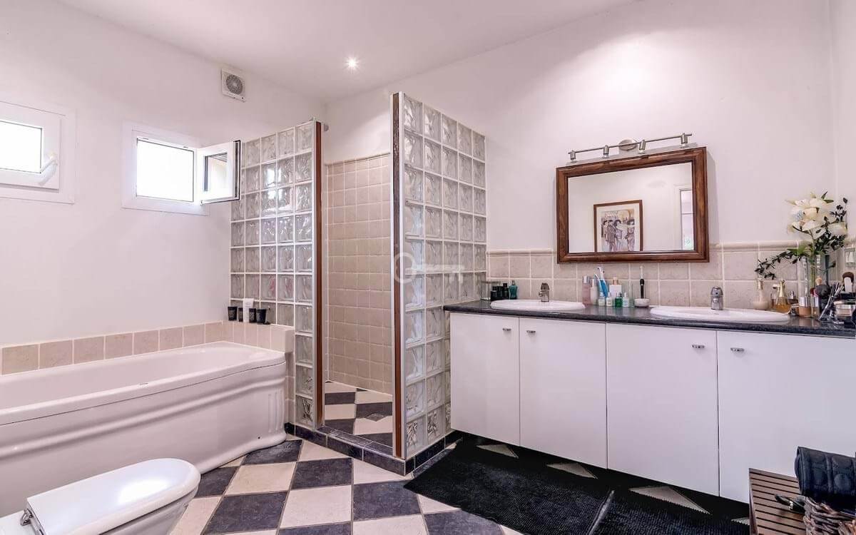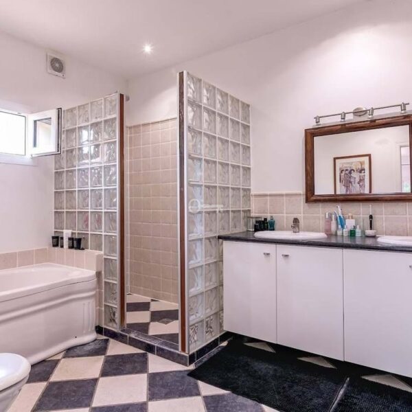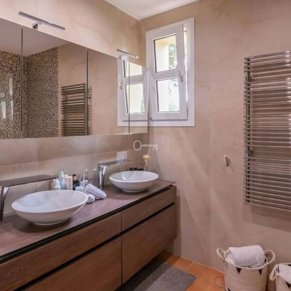 Outdoors, the villa is surrounded by a lush, private garden, offering a serene escape from the hustle and bustle of everyday life. The highlight of the garden is a private swimming pool, measuring an impressive 13 metres by 7 metres, perfect for leisurely swims or entertaining guests. A unique feature of this property is a cave transformed into a wine cellar, adding a touch of charm and exclusivity.