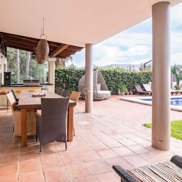 Security and convenience are paramount, with a private and secure driveway leading to the villa, a carport for parking, and 24-hour security service complemented by surveillance cameras. The property is in excellent condition and comes fully furnished, allowing for immediate occupancy. With amenities nearby and easy access to the sea and town, this villa offers an unparalleled lifestyle in one of Spain’s most sought-after locations.