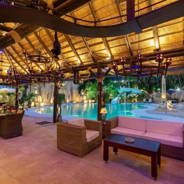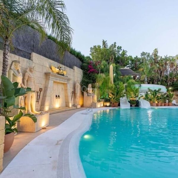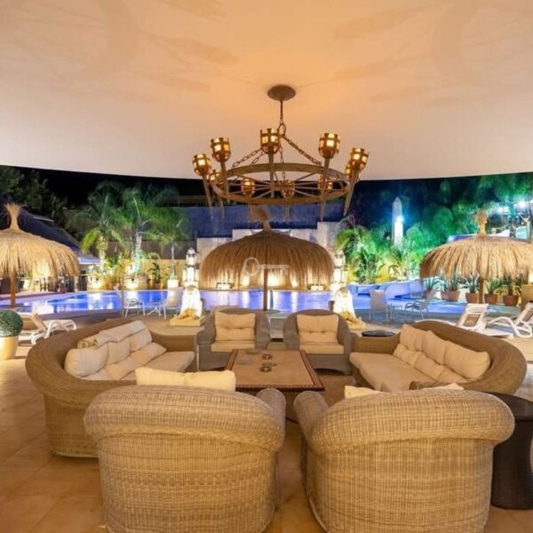 The exterior maintains architectural coherence with a harmoniously designed swimming pool integrated into a 3,000 m2 plot. Spaces conceived for exclusive celebrations, private gatherings, and unforgettable moments under the Sotogrande sky.