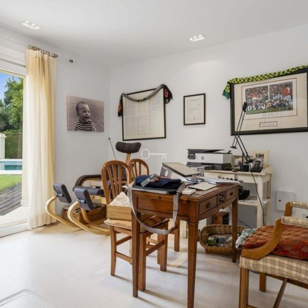 Upon entering, you are greeted by a double volume entrance hall that leads to a spacious open plan kitchen and formal lounge, both of which open onto a covered patio with access to the gardens and pool. The ground floor also includes a formal dining room, a separate laundry area, a service bathroom, and ample storage spaces. In the right wing, there is a very large master bedroom with a walk-in wardrobe, en-suite bathroom, and direct access to the gardens and pool, a private study, as well as an additional private suite with a bedroom and en-suite bathroom.