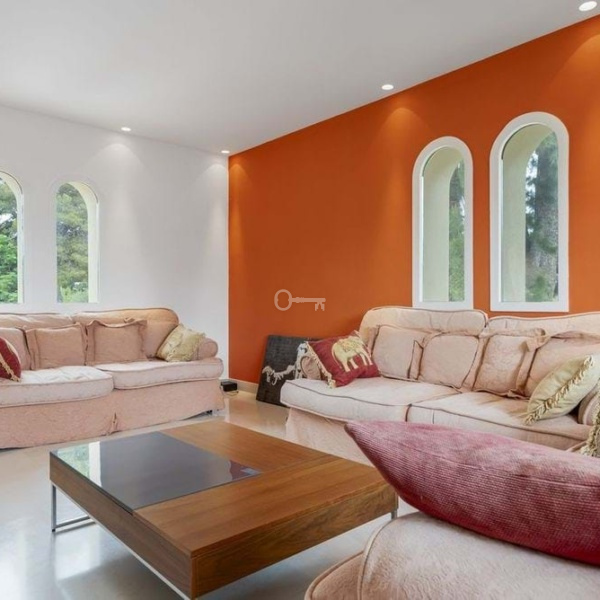 The property also includes a large parking area, a private garage, and elegant fountains at the entrance. This villa epitomizes luxury living, offering ample space, modern amenities, and beautiful surroundings, making it the ideal setting for a serene retreat or entertaining guests.