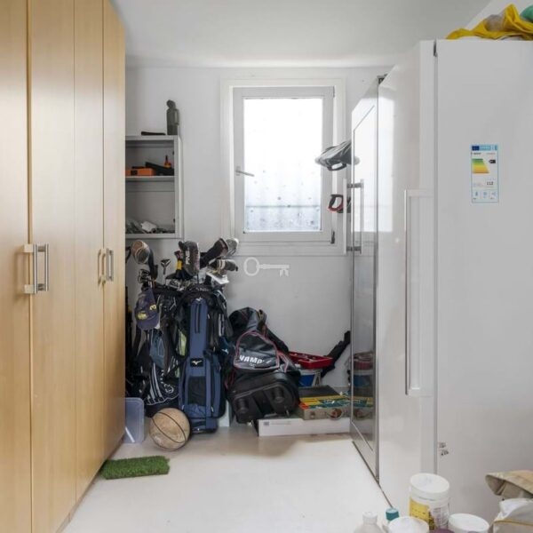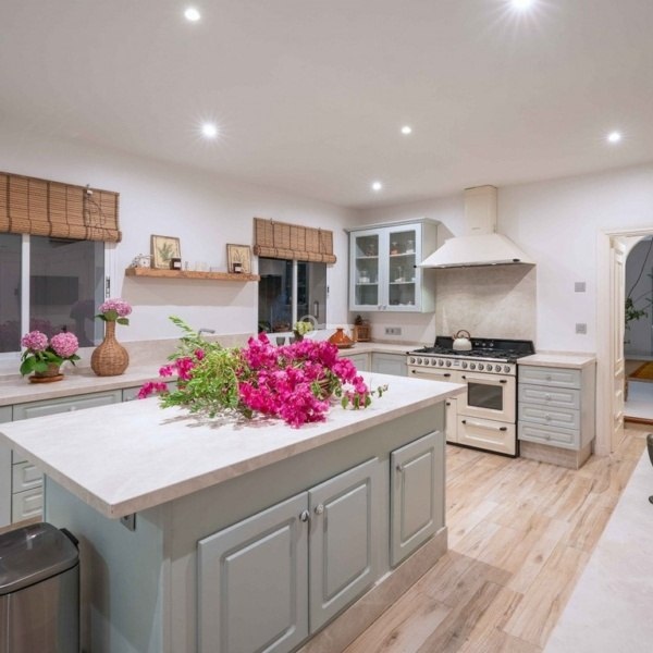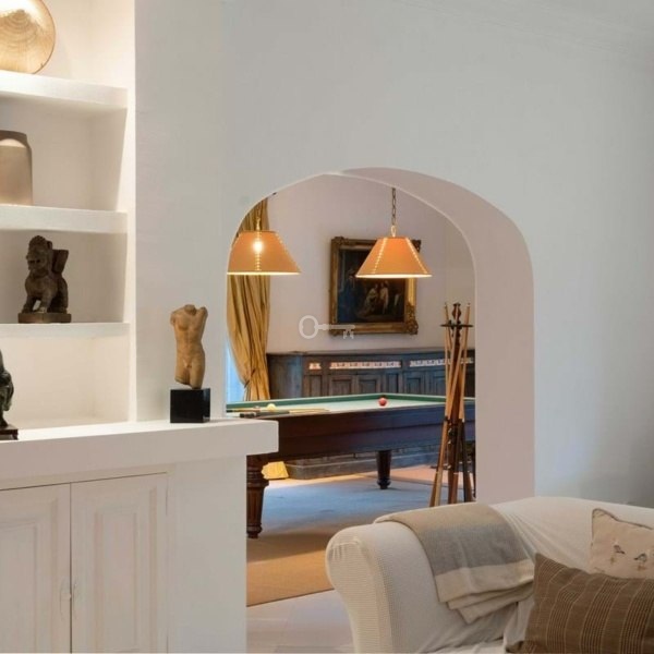 The villa is situated on a generous plot of 3,050 m² and boasts 818 m² of built space, surrounded by a mature garden featuring olive trees, hibiscus, bougainvillea, and fruit trees. The large, heated saltwater pool is the centrepiece of the outdoor space. Spread over two floors, the house offers a comfortable and sophisticated living experience.