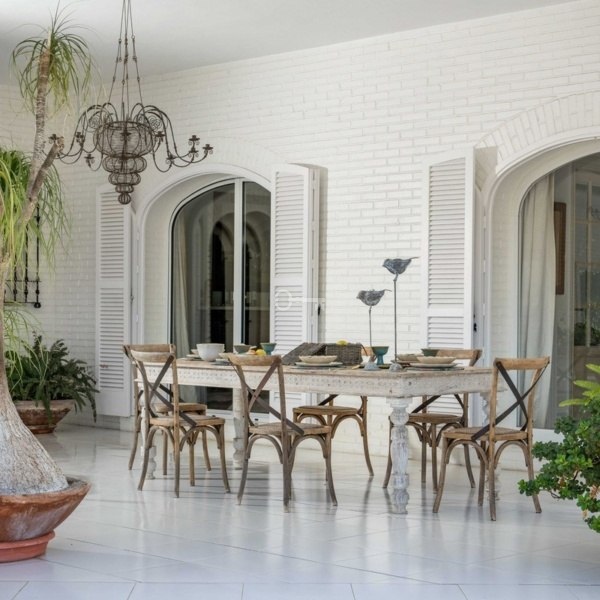 The inviting covered terraces and the large outdoor living space, with various seating options and a summer dining area, offer views of the garden, the pool, and the Natural Park of Los Alcornocales, creating a perfect oasis for enjoying the Mediterranean climate and outdoor living.