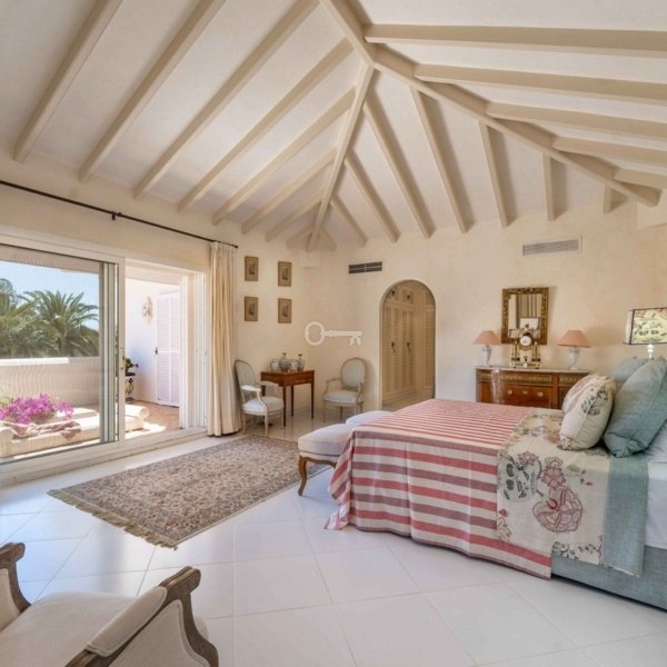 Los Olivos is an elegant villa located in Sotogrande Costa, within the prestigious Sotogrande urbanisation. It is set in a privileged environment, just a few minutes walk from the beach and surrounded by the Natural Park of Los Alcornocales. The property enjoys a strategic location, within close proximity to several of Europes finest golf courses, including “The Real Club de Golf de Sotogrande”, “The Real Club Valderrama”, and “La Reserva Club”. Additionally, it is near the exclusive Santa María and Ayala Polo Clubs, the Marina, top-notch tennis and paddle facilities, luxury hotels, and the renowned Sotogrande International School.