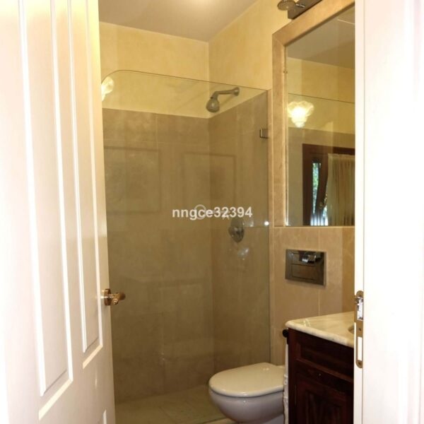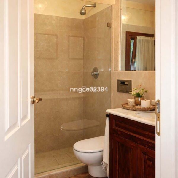 The upper-floor master suite is a sanctuary unto itself, occupying the entire level for complete privacy. Bathed in natural light, it opens onto a romantic private balcony overlooking a lush internal courtyard, evoking the timeless romance of a classic European villa. The adjoining grand en-suite bathroom feels more like a private spa, with generous proportions, a serene atmosphere, and direct connection to nature a space designed for slow mornings and quiet evenings.