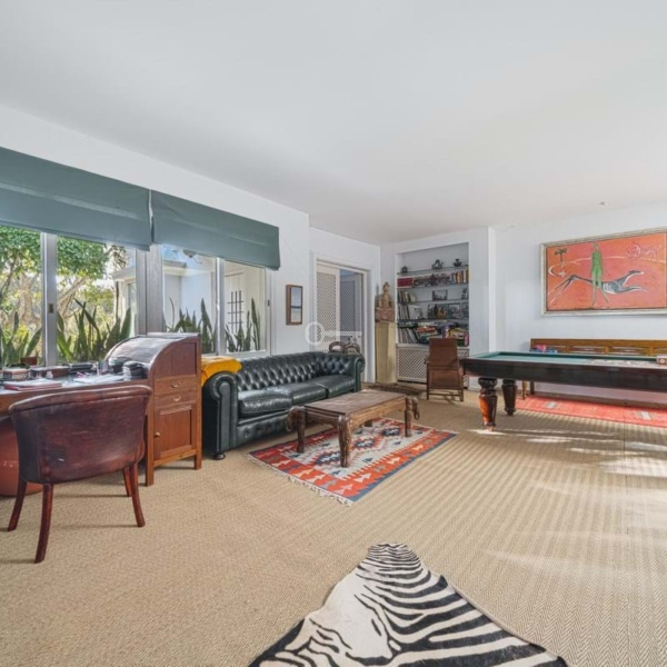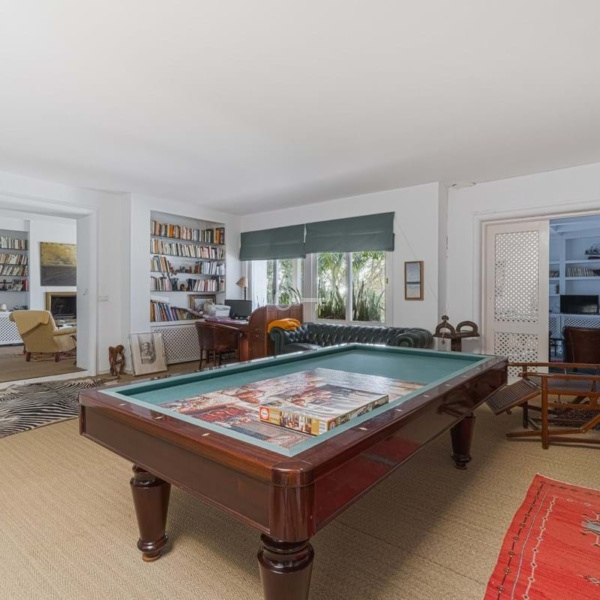 Set on huge plot of 2333 m2, the villa is distributed all on one level. It consists of 7 bedrooms, 7 bathrooms, bright and spacious living room, ample lounge and sitting areas with direct access to the porch, and further onto the garden, decking and pool area. It also has a kitchen and a laundry room with patio.