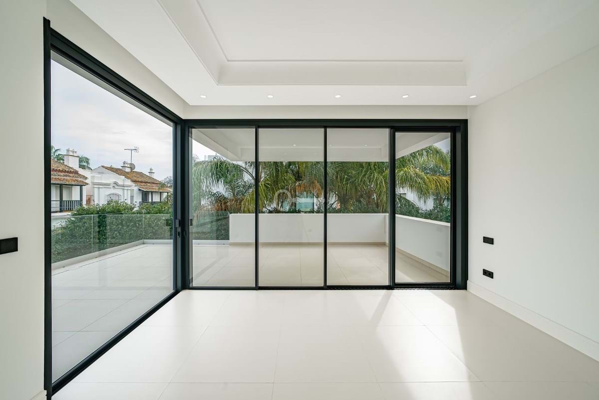This exceptional modern villa, situated in one of Marbellas most prestigious residential areas, is nestled within the secure urbanization of Río Verde, just 100 meters from the beach.