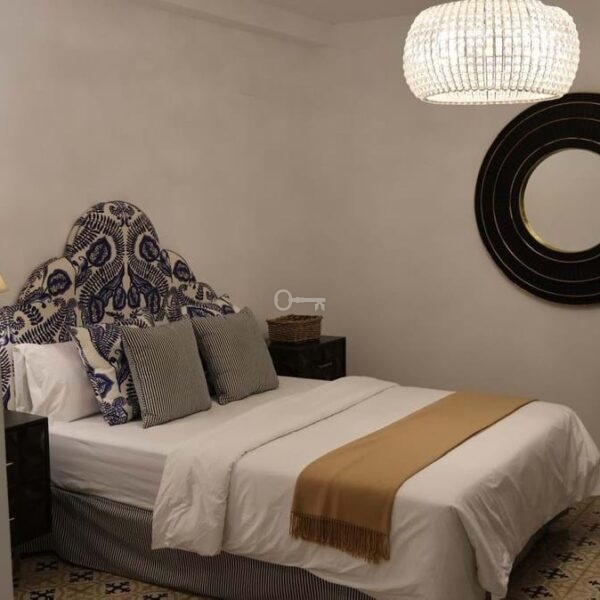 The house is very special and was built and designed according to the personalized project which differs it from the rest of its kind. The materials used during the construction were brought from other parts of the world, which makes the house unique. It comprises on the ground floor an entrance hall with cathedral height ceiling, a fully equipped open plan kitchen, two bedrooms with en-suite bathrooms and a lounge/dining room with access to the covered porch with sitting and dining areas decorated with a fountain and climbing plants.