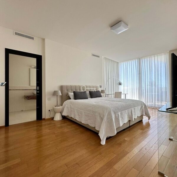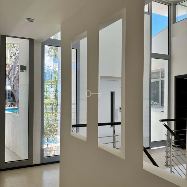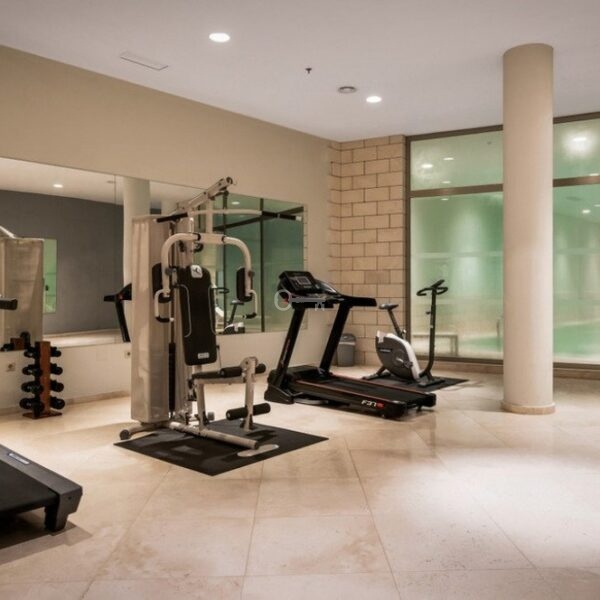 The residence features both a private and heated indoor pool, as well as communal garden access, making it perfect for those who appreciate both solitude and community. Amenities near the property include proximity to the beach, town, and local schools, making it an ideal setting for both leisure and family life. Security is paramount with a 24-hour security service, surveillance cameras, and a secure gated community entrance, ensuring peace of mind for its residents.