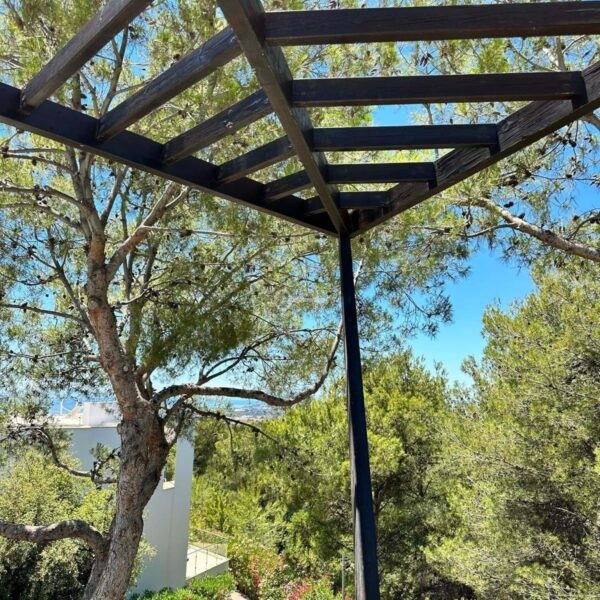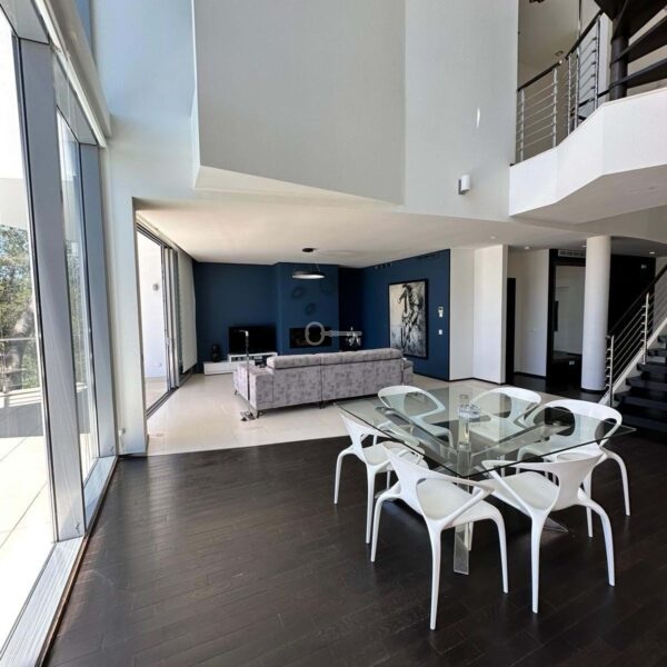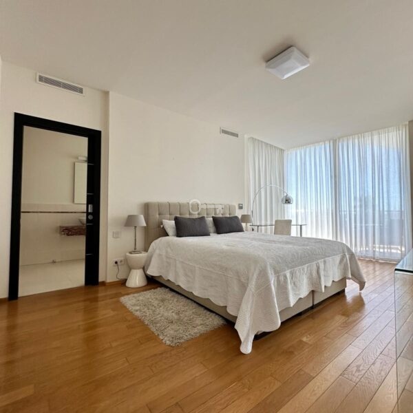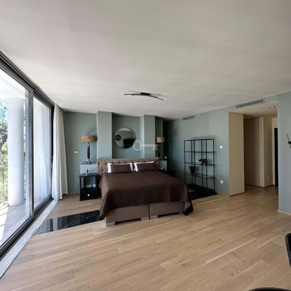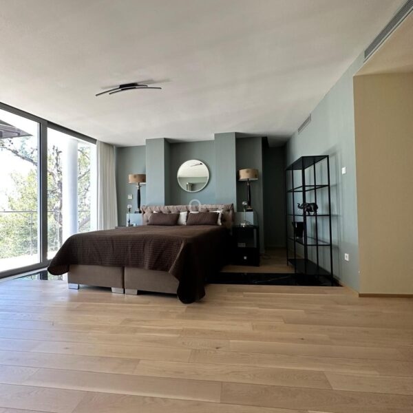 This luxurious abode comes fully furnished and includes a fully fitted, open-plan kitchen equipped with modern appliances. Quality and comfort are evident throughout with air conditioning, underfloor heating in the bathrooms, and double glazing. The living room features a sophisticated fireplace and parquet floors, creating a warm and inviting atmosphere. Additionally, a roof terrace offers partial sea and stunning garden views, while glass doors and porcelain floors lend a touch of modernity.