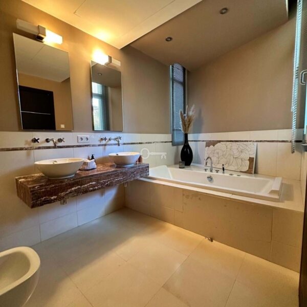 Situated in the prestigious Meisho Hills of Marbella Golden Mile, Marbella, Malaga, this luxury semi-detached house epitomises elegant living. Boasting five spacious bedrooms, each with its own en-suite bathroom, this property offers an unparalleled level of comfort and privacy. With a built area of 800m², every corner of the house is meticulously designed to reflect a blend of opulence and practicality. The property includes a private garage and a guest toilet for added convenience.