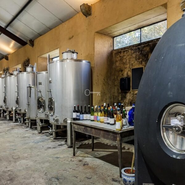 The property adopted an organic approach and biodynamic agricultural practices in 2015, as part of a natural wine project. The terroir, influenced by the sea breeze, imparts vibrant acidity to the wines achieved through slow maturation. Some vineyards, abandoned for years, have been fully revitalized, occupying 5.5 hectares with vines 25-30 years old, and 1.5 hectares with vines planted in 2018. Grape varieties include Castelão, Alicante Bouchet, Tinta Bouchet, Chardonnay, and Arinto. The viticulture is certified organic, with the soil composed of sandstone (grés) and quartz minerals, reflecting the characteristics of the region’s Atlantic climate. The property has a 480m2 cellar and supporting machinery.