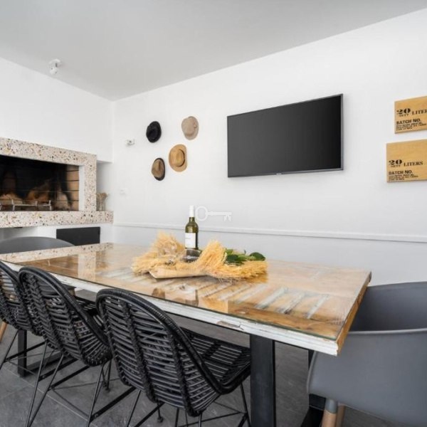 On the property, there is also a separate building, perfect for entertaining family and friends – equipped with a kitchen, fireplace, toilet, and a cozy dining area next to the pool.