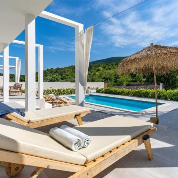 The villa is located in the village of Tugare, just a short drive from Split and Omiš.