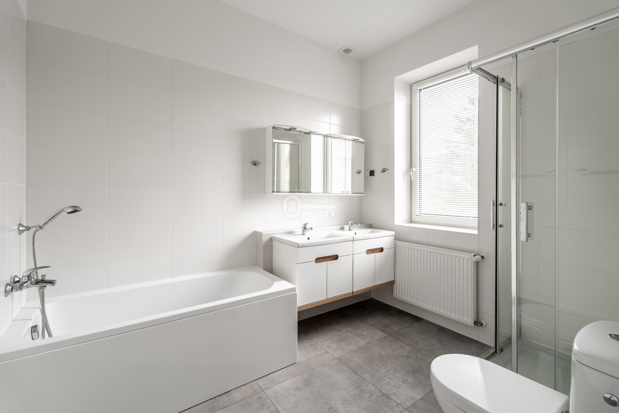 Almost every room is air-conditioned, ensuring year-round comfort. The bathrooms are designed with comfort in mind, featuring both bathtubs and showers. An additional advantage is the ample storage space. There’s also a two-car garage and an additional parking space in front of the house.