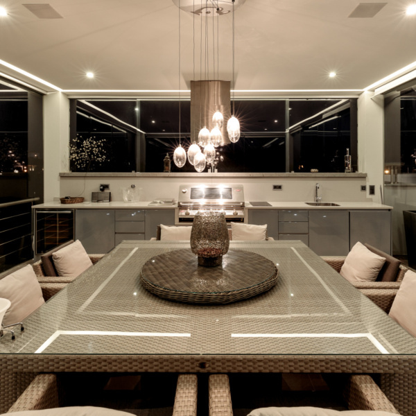Villa Panorama has been designed with the highest comfort and functionality in mind. The interiors are finished with natural wood, stone and the highest quality materials. Five spacious bedrooms, each with a private bathroom and dressing room, provide comfort to the residents. The 95 m² living room has three terraces with panoramic views. The modern kitchen is fully equipped with premium appliances and elegant furniture.