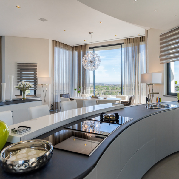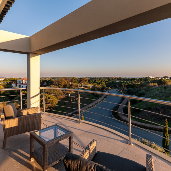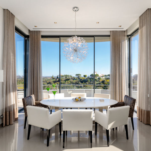 A spacious terrace with an outdoor dining area and a modern barbecue allows you to enjoy the sun and picturesque views of the golf course and the surrounding landscapes.