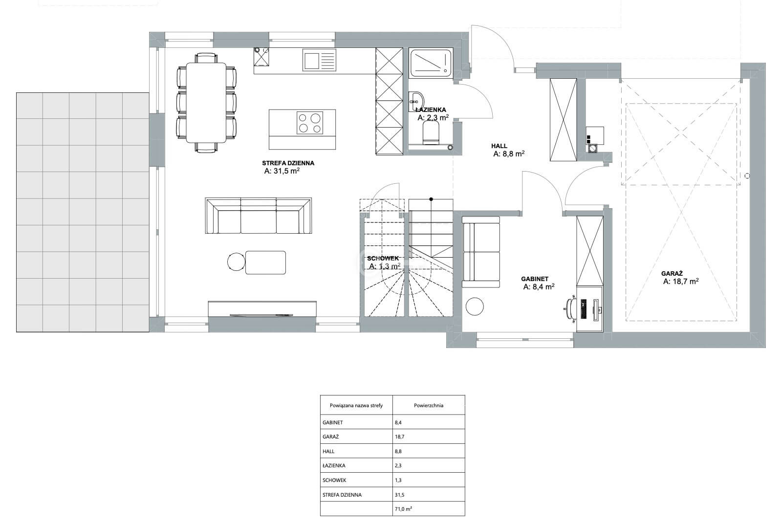 * Living Area – 71 m²,