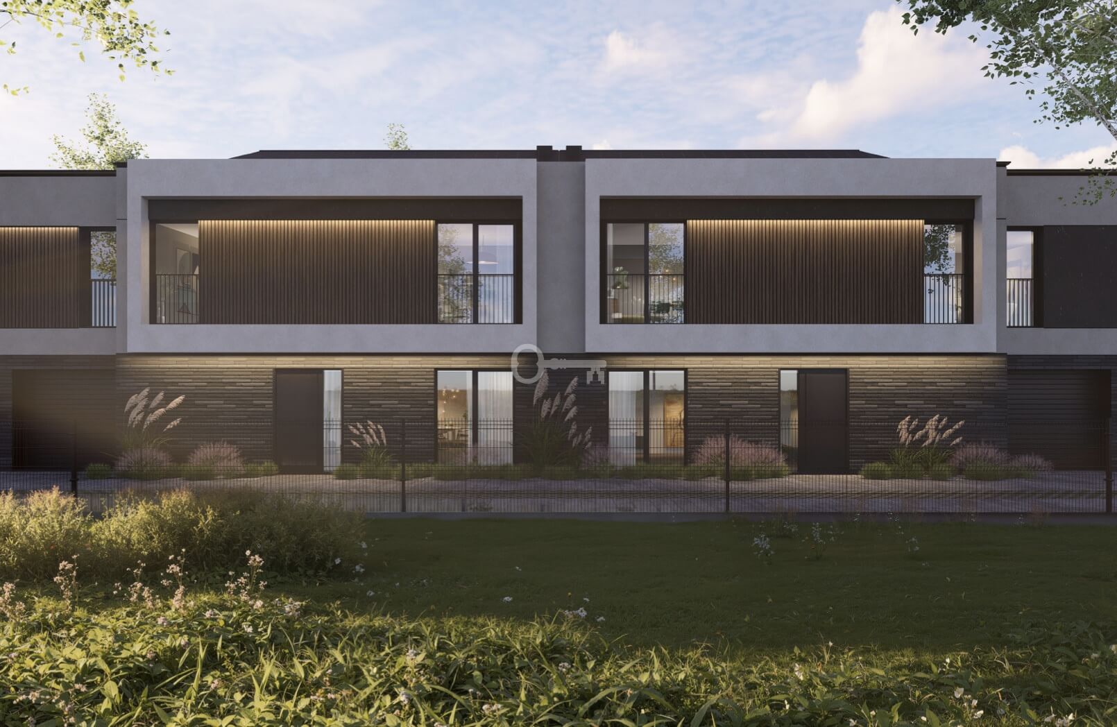 * Garage integrated into the building, private garden, fully fenced and landscaped plot.