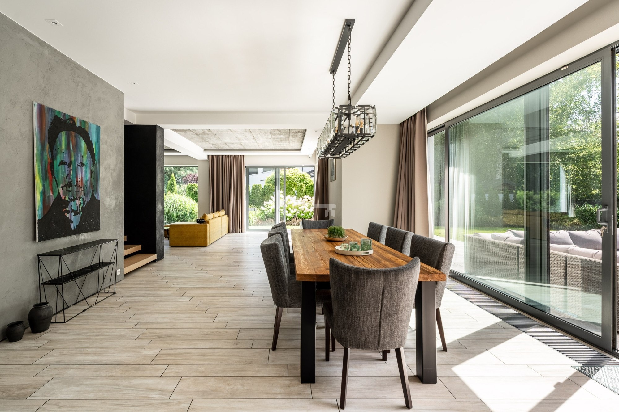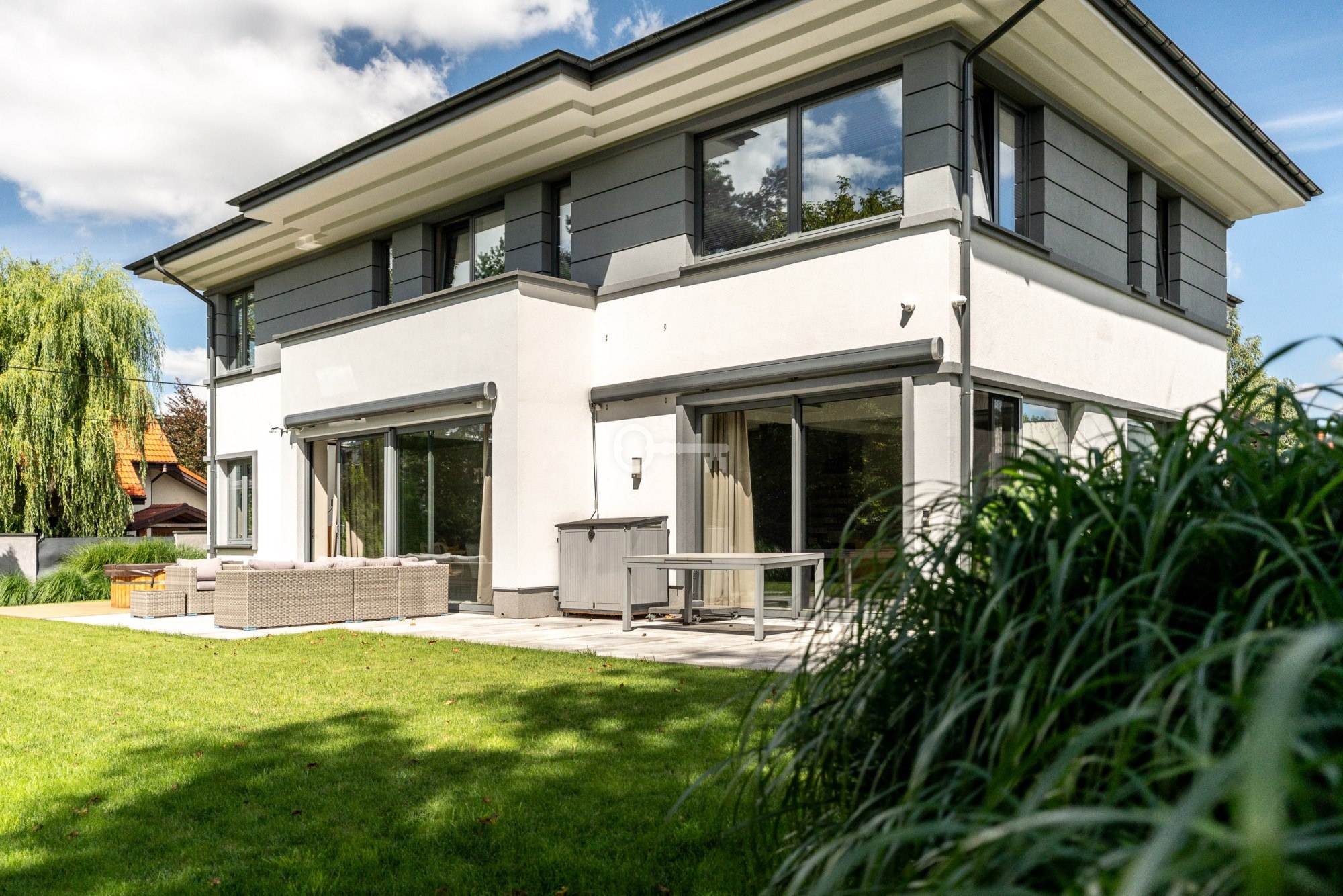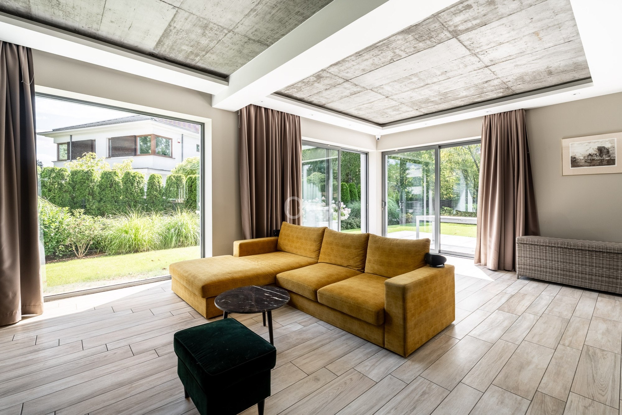 The house has a modern body and spacious and high rooms. The interior decoration is subdued, in which space and well-chosen furniture and accessories play an important role.