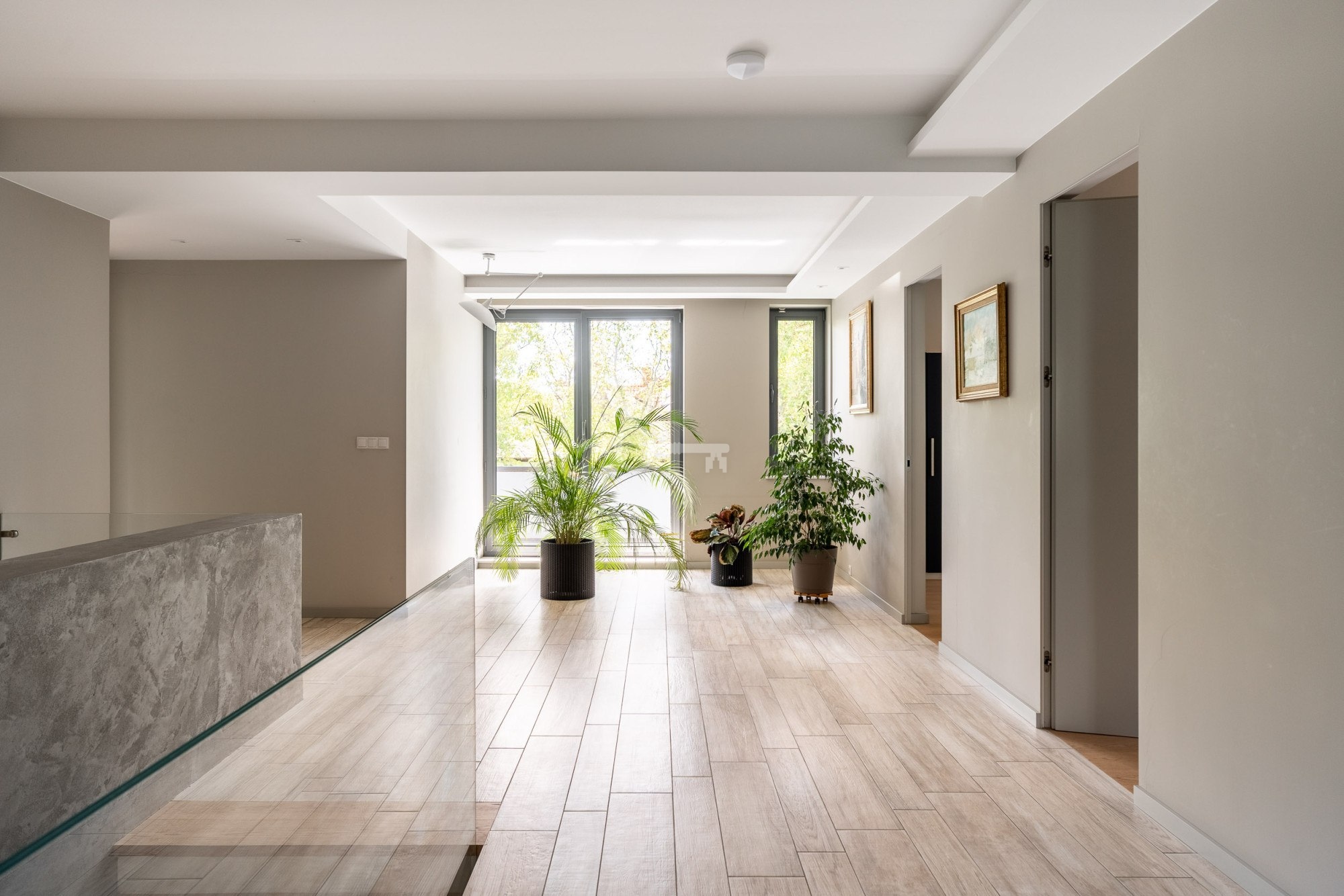 A fireplace in the living room and a jacuzzi in the garden are an added bonus. On the first floor, the floor is finished with wooden planks, the rooms are large and the hall is spacious. One of the rooms could be used as an exercise room or children’s playroom. Large windows make the house very bright. It is an ideal space for a family.