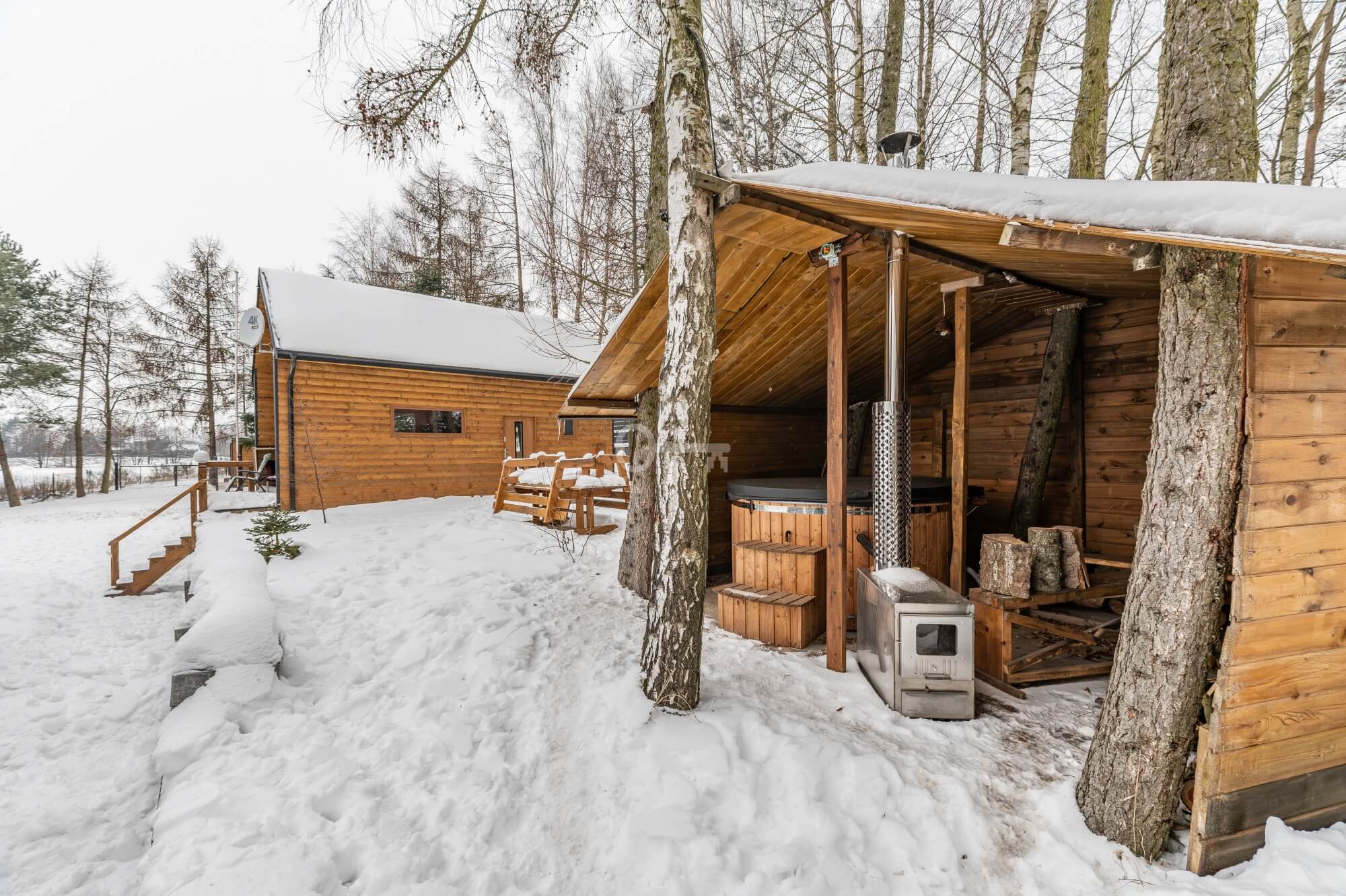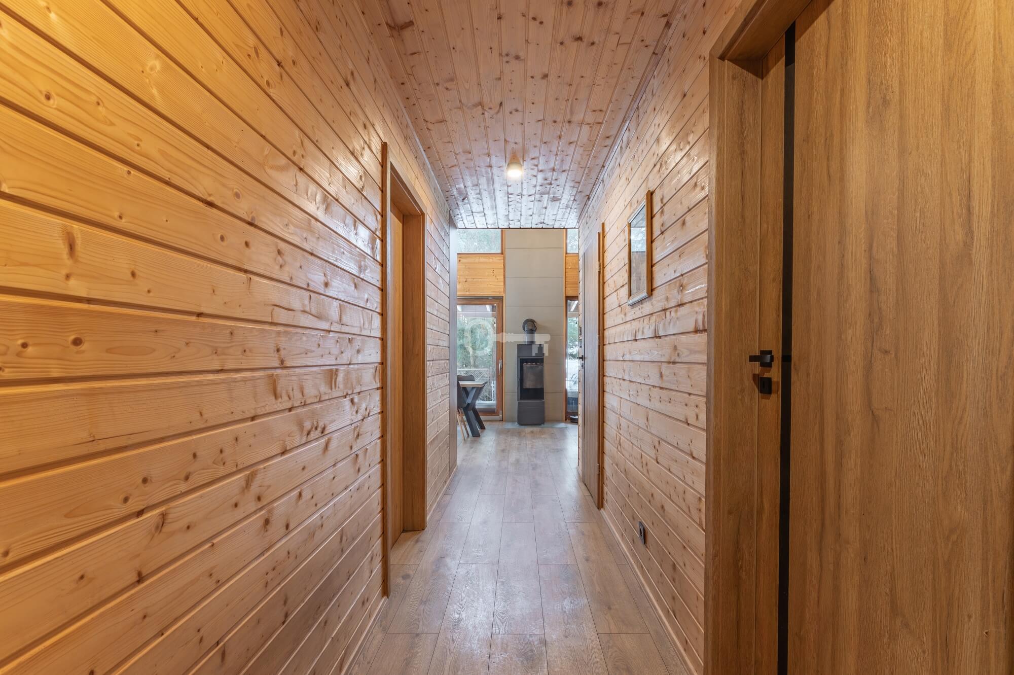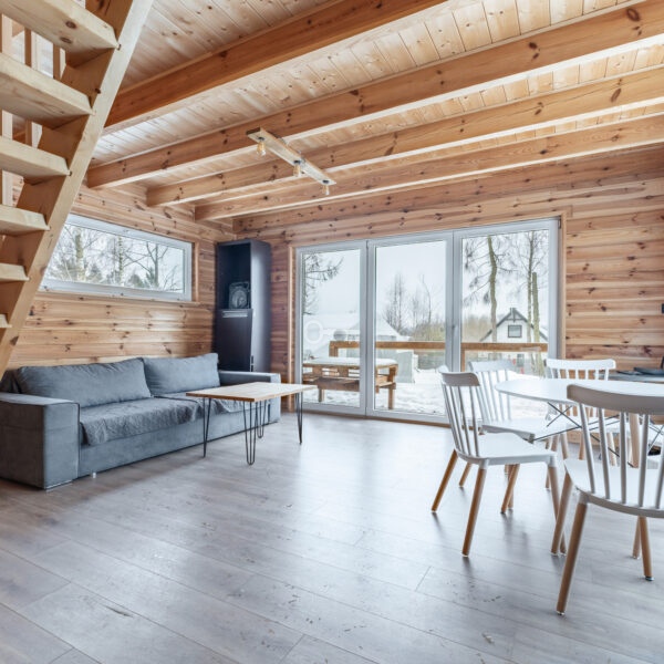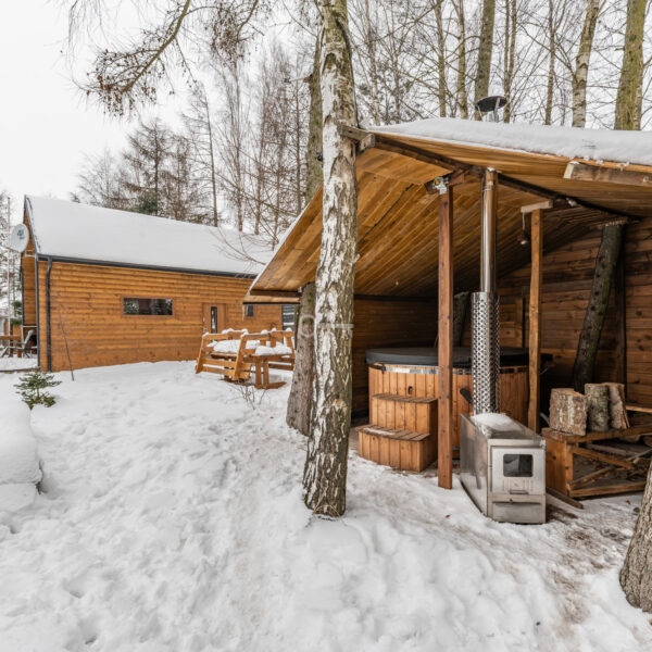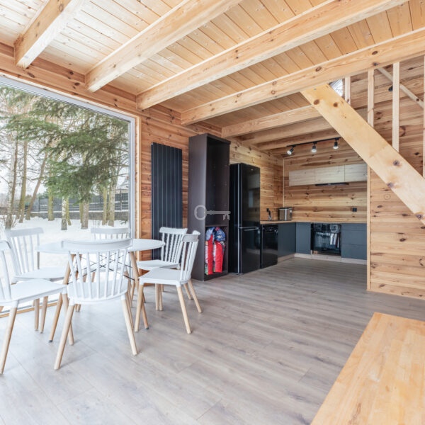 Guest House: A cozy guest cottage that can accommodate up to 6 people. Just like the main house, it is finished entirely in wood. The kitchen, bathroom, and bedrooms are fully equipped.