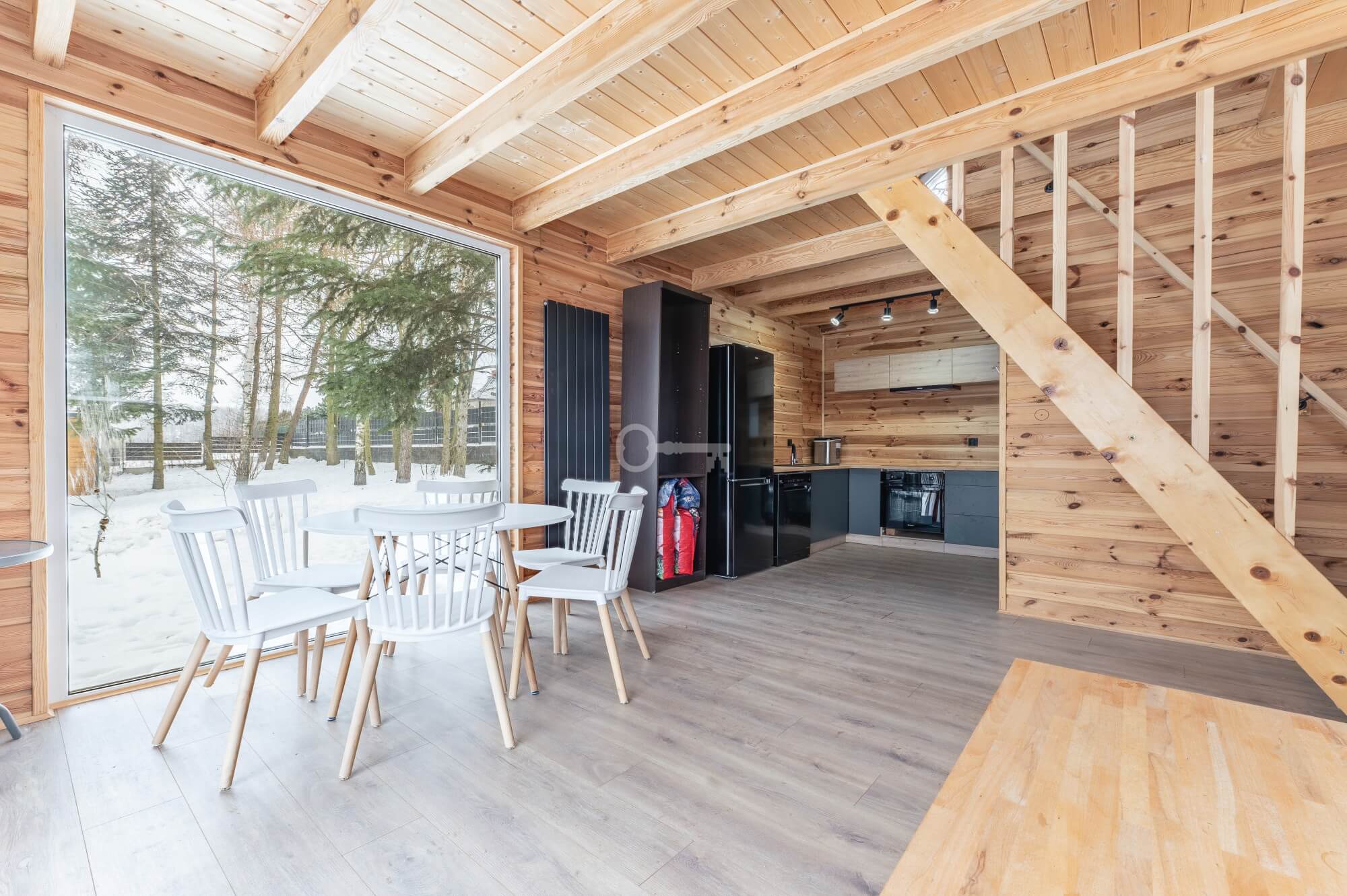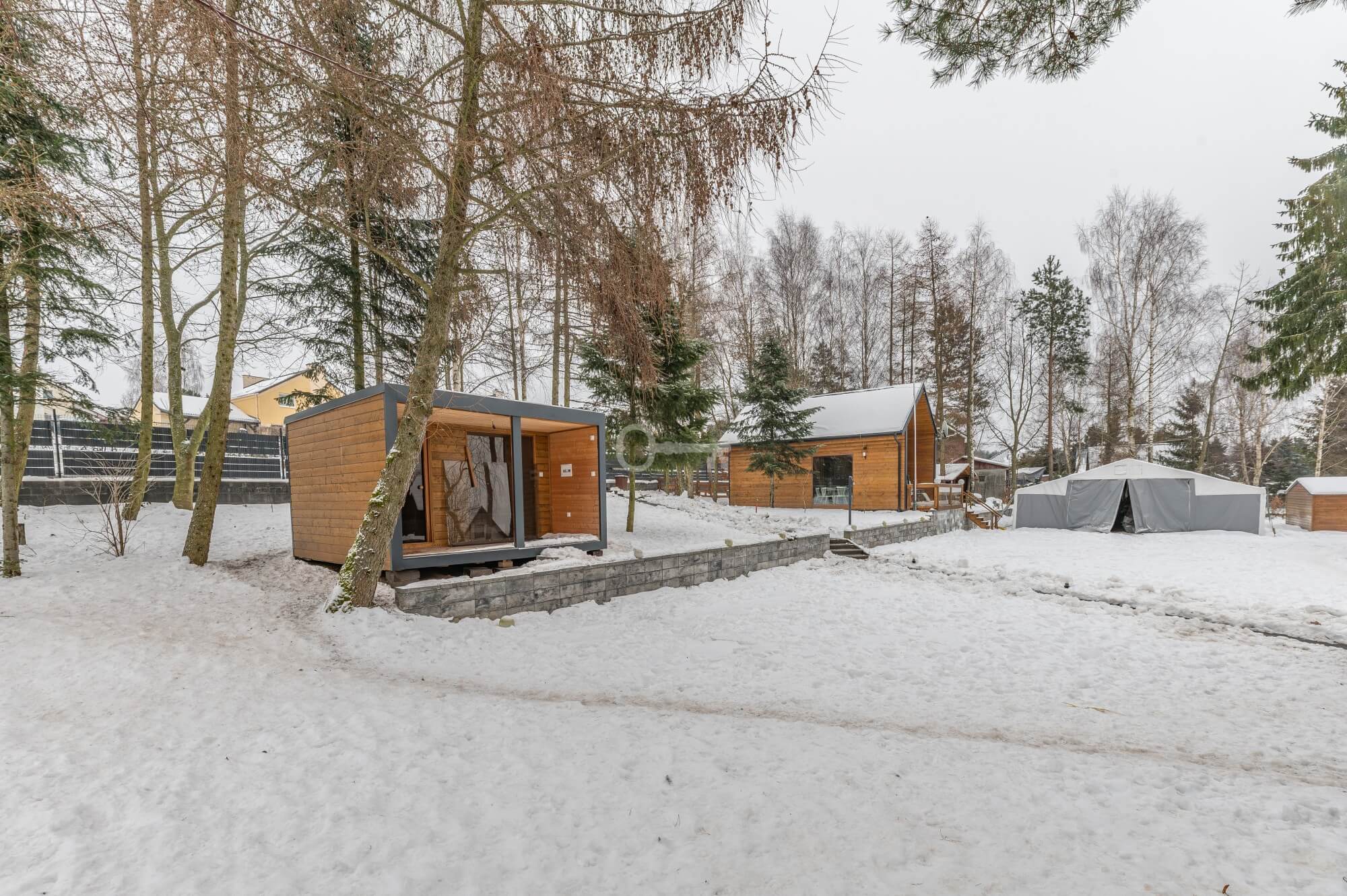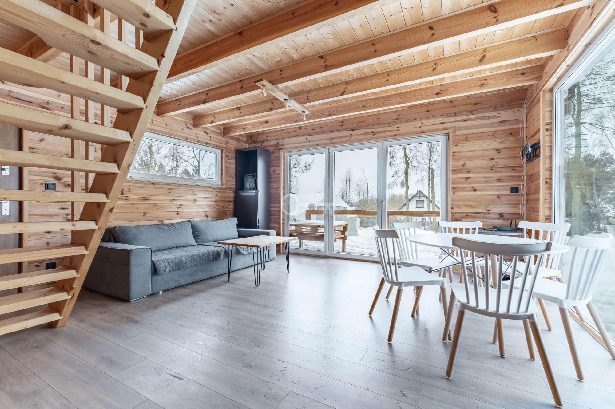Guest House: A cozy guest cottage that can accommodate up to 6 people. Just like the main house, it is finished entirely in wood. The kitchen, bathroom, and bedrooms are fully equipped.