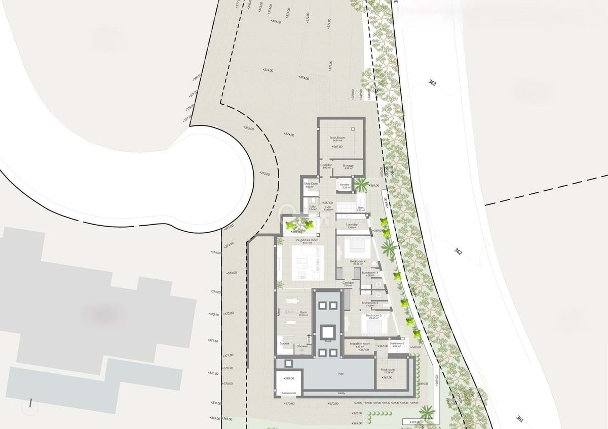 The project is designed with five spacious bedrooms and seven opulent bathrooms across three meticulously planned levels. Quality is paramount, with high-grade materials used throughout the property. This exquisite villa offers an array of high-end amenities, including a full gym, private cinema, game room, wine cellar, elevator, and sauna. Every detail has been thought of to provide you with the ultimate luxury living experience.