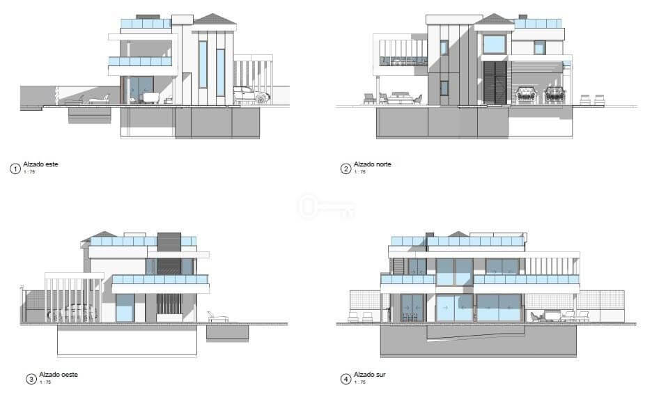 Building license in progress for a two-level villa with rooftop terrace and basement