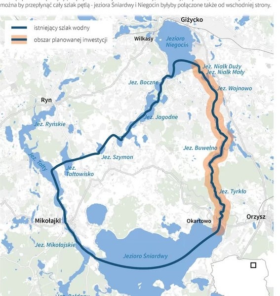 * Lake Buwełno – part of the Mazurian Sailing Loop,