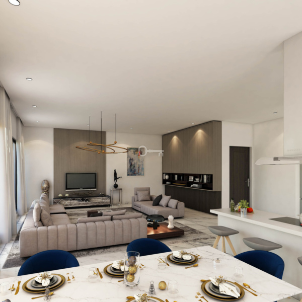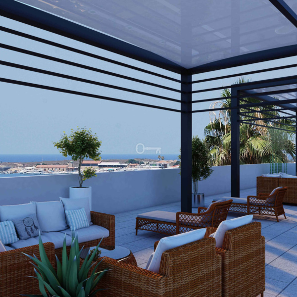 Przestrzenie są tworzone przez wyrafinowane i funkcjonalne plany pięter. Rozległy taras dachowy o powierzchni 50m2 z widokiem na ocean zaprasza do delektowania się malowniczymi krajobrazami i delektowania cypryjskim słońcem.